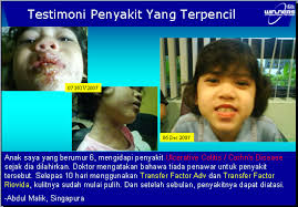 55. Anak saya sudah menghidapi sinus sejak dia berumur setahun, dansekarang dia sudah berumur 17 tahun. Setiap pagi bila dia menghembushingus, nescaya sinki bilik mandi akan tersumbat kerana terlalu banyakhingus yang pekat dan hijau. Dia telah menjalani 2 operasi tetapi penyakitsinus dia tidak juga sembuh. Alhamdulillah, setelah mengambil TransferFactor selama 2 minggu, penyakit dia telah sembuh sepenuhnya! Jutaanterimakasih kepada Chegu Jalil dan Winners. Drpd Pn Zuraidah, SkudaiJohor,